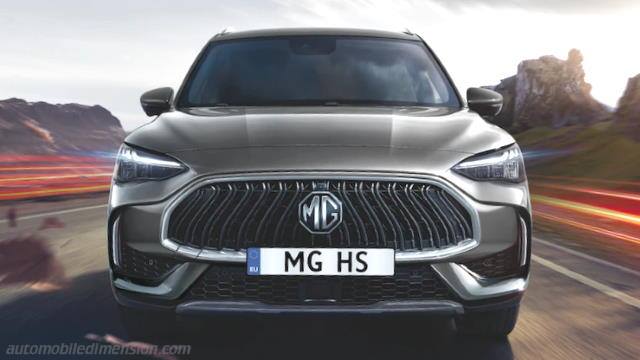 Binnenruimte van 5 zitplaatsen.De MG HS heeft een lengte van 4670 mm, een hoogte van 1663 mm, een breedte van 1890 mm zonder de buitenspiegels en een gewicht van 1550-1855 kg volgens motorisering. Het plug-in hybride model wordt HS PHEV genoemd en heeft een kofferruimte van 441* liter. Vanwege zijn grootte, functies en bodemvrijheid, classificeren wij de MG HS in de categorie midden SUV. Dit nieuwe model is 60 mm langer, 14 mm breder en 22 mm lager in vergelijking met de afmetingen van de MG HS 2024.